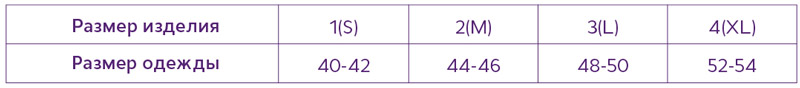 Таблица подбора размера: