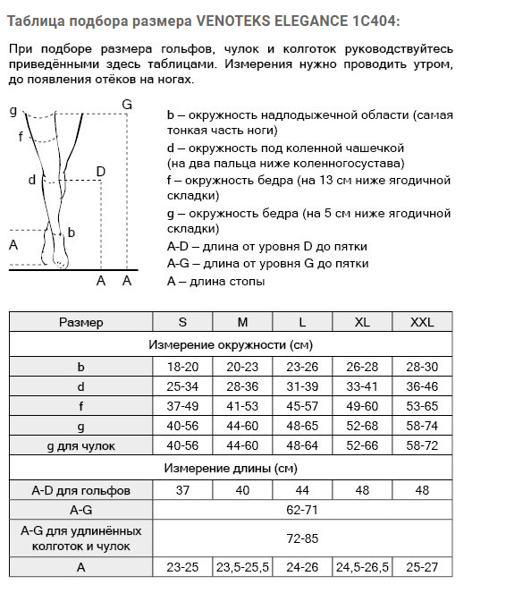 Показания к применению колготок VENOTEKS ELEGANCE 1С404: