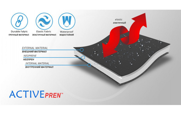 ActivePren™ это трехслойный материал состоящий из внешней эластичной ткани и внутреннего слоя из неопреновой пенки. Материал характеризуется мягкостью и высокой эластичностью. Благодаря системе AirSupply, часть тела под ортезом вентилируется, поддерживается соответствующее разогревание. Это не тканный материал, он не имеет грубых волокон, не натирает кожу. Ортезы из ткани ActivePren™ очень прочные и эффективные. Материал водостойкий.