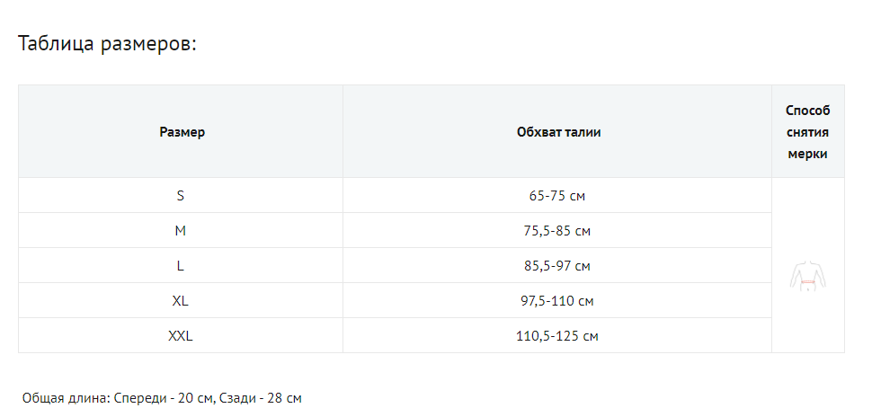 В конструкции использованы шесть ремней-стяжек, что позволяет точно подогнать изделие под пользователя. Окружность бандажа легко регулируется с помощью застежки-липучки в передней части бандажа.