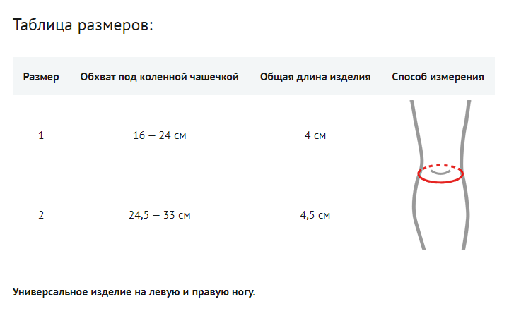 Изделие выполнено из тонкого, цветного неопрена, снизу покрытого слоем медицинского силикона, который воздействует на больное место во время каждого движения, а также улучшает стабильность ортеза на конечности и поддерживает надколенник.
