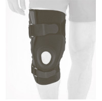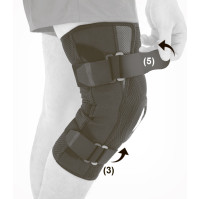 - Ортопедическая шина на шарнирах: С одной стороны ортеза предусмотрена облегченная ортопедическая шина на шарнирах, которая обеспечивает дополнительную поддержку и стабильность коленного сустава.