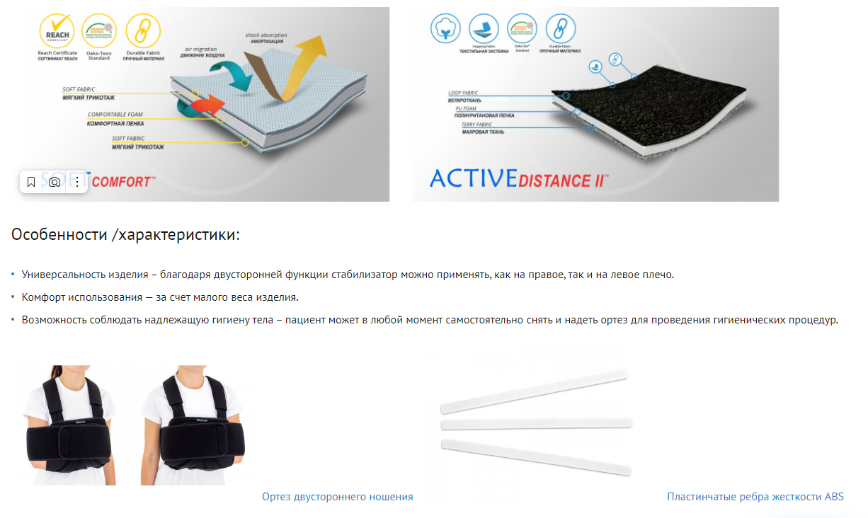 Ортез изготовлен из материалов CottonComfort и ActiveDistance II