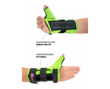 Во внутренней и наружной частях ортеза установлены алюминиевые усилители. Их форму можно легко изменять, они плотно удерживают запястье, не давая ему двигаться. При необходимости их можно вынуть. Три обводных ремешка Velcro позволяют быстро надевать и снимать ортез и облегчают настройку уровня сжатия в соответствии с потребностями ребенка.