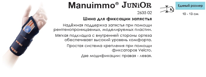 Купить mANUIMMO® JUNIOR Шина для фиксации запястья детская с доставкой В Перми в интернет салоне Med V Rus по цене 3 250 руб.. Скидки до 25%. Доставка и самовывоз из пункта выдачи товаров. Оплата наличными или картой. Телефон для заказов +7 (495) 003-4512.