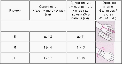 Для правильного подбора детского лучезапястного (пястнофалангового) ортеза Orlett необходимо измерить сантиметровой лентой (плотно, но не утягивая) окружность лучезапястного сустава и длину кисти от лучезапястного сустава до кончика 3-го пальца. Далее воспользоваться таблицей: