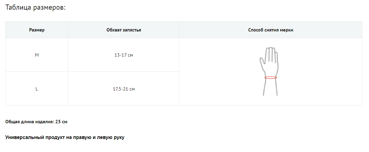 Изделие имеет открытую конструкцию и регулируемую застежку, что делает ортез более универсальным и облегчает его подгонку по форме ладони. В ортезе есть лента стабилизирующая большой палец, ее излишек после подгонки изделия нужно отрезать. А также изделие снабжено алюминиевой боковой шиной с фиксатором для отведения большого пальца. Расстояние и способ отведения может быть подобран посредством изгибания шины соответствующим образом.