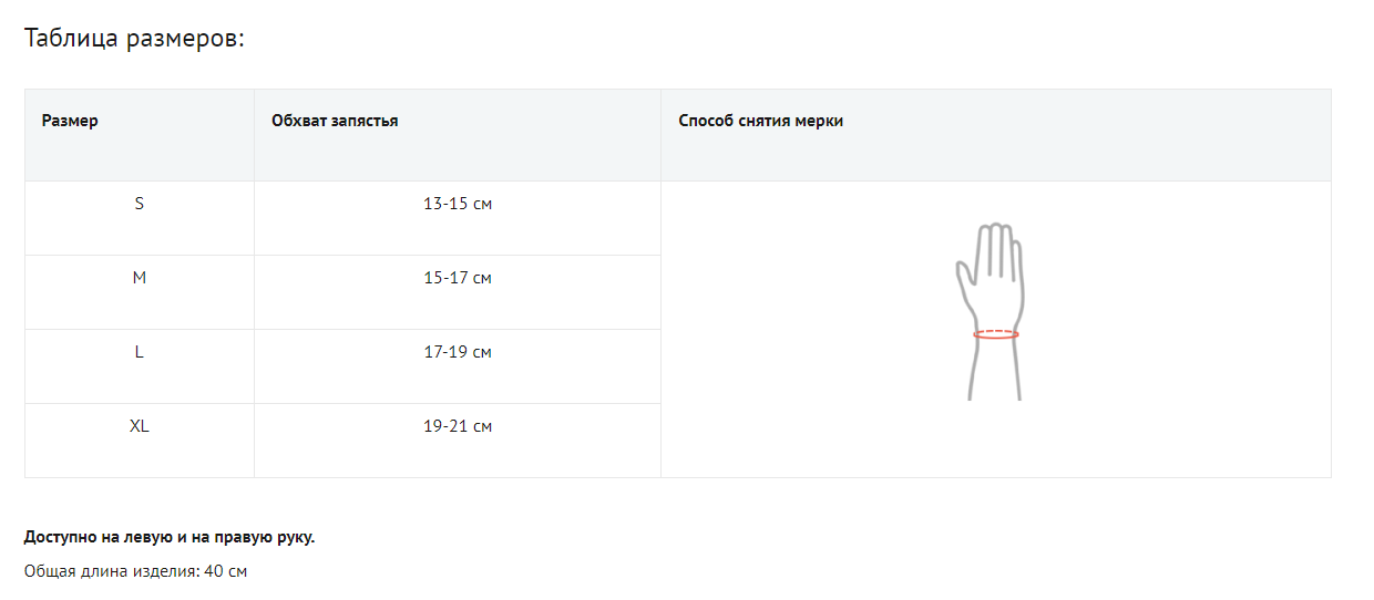 Изделие приспосабливается к руке и надежно ее фиксирует