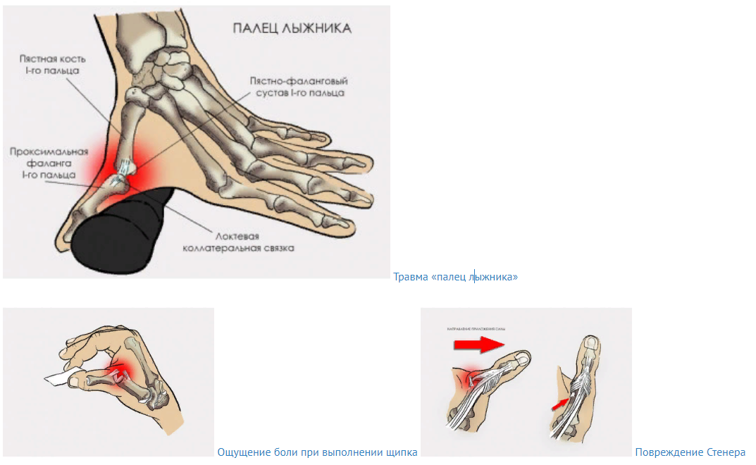 разрыв локтевой коллатеральной связки пястно-фалангового сустава первого пальца («палец лыжника»)