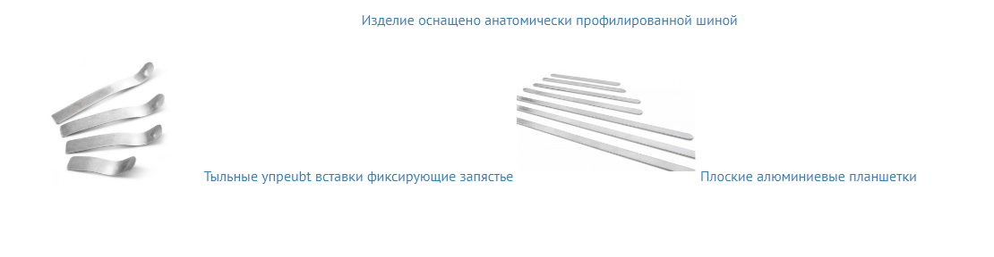 Изделие оснащено анатомически профилированной шиной фиксирующей запястье, а также лентой VELCRO, способствующей идеальному прилеганию изделия к конечности. На тыльной стороне ладони имеются четыре упругие вставки, дополнительно фиксирующие запястье.