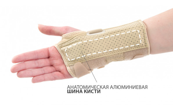 Изделие оснащено анатомически профилированной шиной фиксирующей запястье, а также лентой VELCRO, способствующей идеальному прилеганию изделия к конечности.