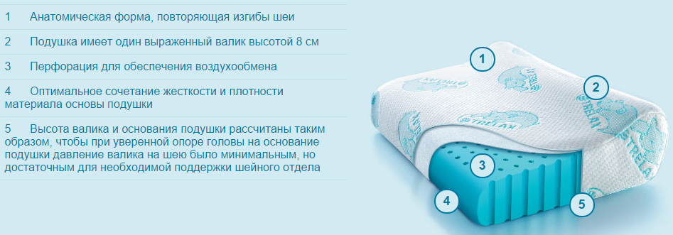 Комплектность: Подушка в чехле, съемная наволочка, полиэтиленовый пакет, коробка, инструкция по применению