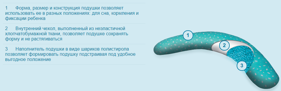 Подушка предназначена для применения во время беременности и в период кормления ребенка