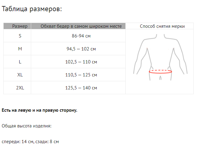 Пояс могут носить как мужчины, так и женщины. Помимо прочего, изделие имеет ремень паха, который способствует точной стабилизации ортеза на теле.