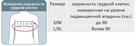 Для правильного выбора подходящего размера плечевого бандажа Orlett RS-105 необходимо сантиметровой лентой измерить окружность грудной клетки на уровне подмышечной впадины. Далее воспользоваться размерной таблицей, представленной ниже: