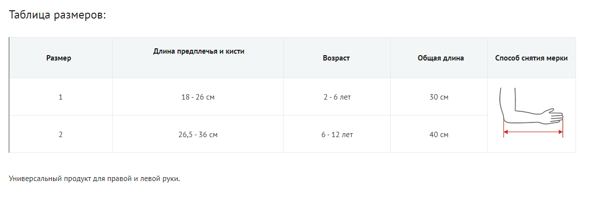 Ортез подходит для левой и правой руки, не доставляет дискомфорта в процессе использования благодаря своей легкости и современным мягким материалам. Регулировка положения предплечья осуществляется с помощью ремней. Возможно закрепить предплечье под углом 90° или 45°.
