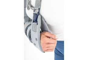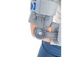 Ортез локтевого сустава с регулировкой подвижности AM-KG-AR/1R – является эффективным ортопедическим изделием для фиксации локтевого сустава под заданным углом. Благодаря применению ортопедических шин с регулировкой угла сгибания и разгибания с шагом по 15 градусов, была достигнута отличная стабилизация и фиксация изделия. Система ремней на липучках велкро устанавливает изделие в нужном положении, обеспечивает плотное прилегание ортеза к конечности и эффективную фиксацию сустава. Шины обеспечивают латеральную фиксацию верхней конечности. Система независимого крепежа шин к рукавам плеча и предплечья позволяет индивидуально, точно и легко подобрать место крепления шин к манжетам.
